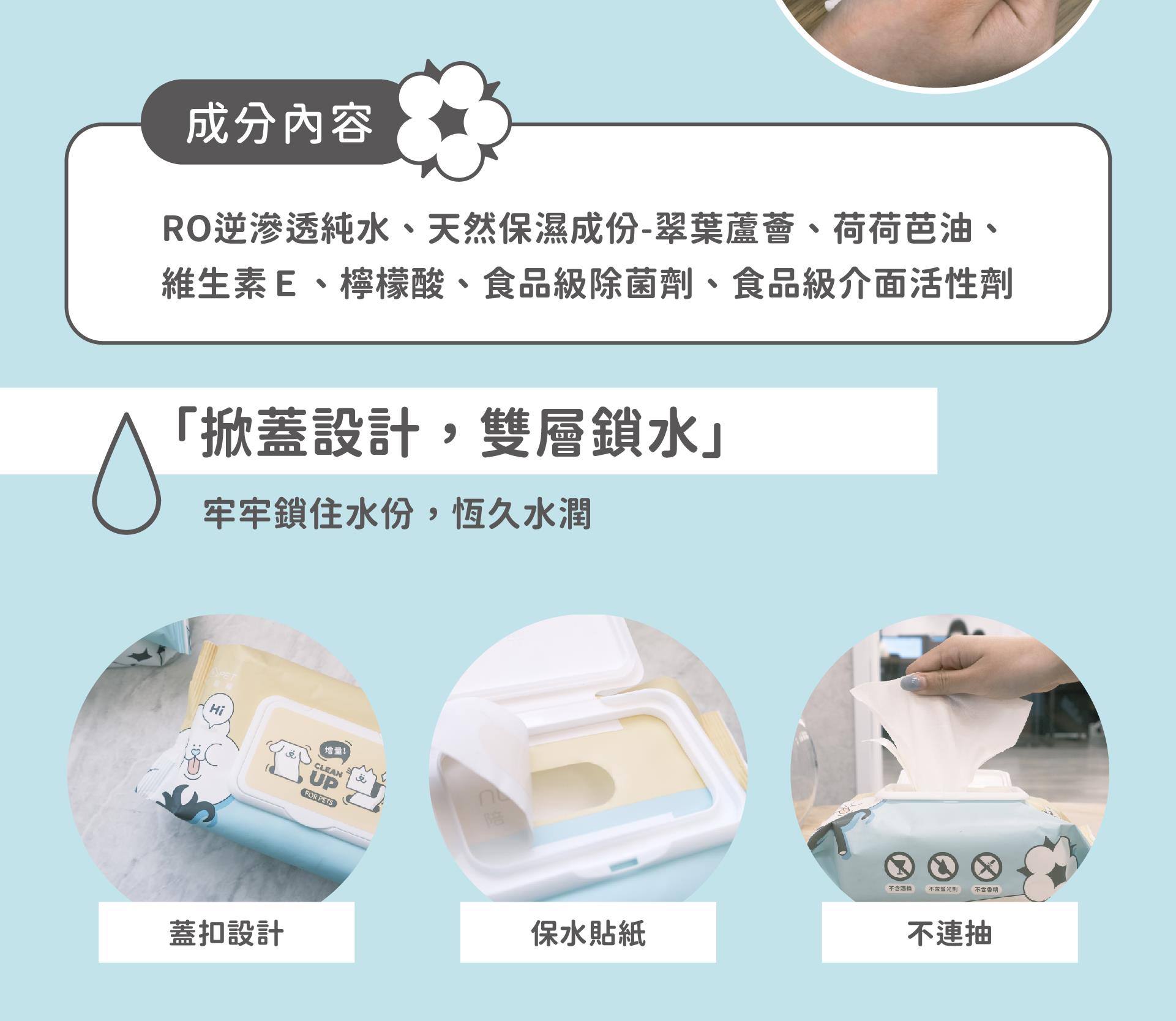 ✨全食品級原料,誤舔也不擔心✨pH6.7溫和中性,保護毛孩皮膚✨無色無味,不刺激毛孩眼睛及嗅覺✨嚴選頂級材質,柔嫩舒適✨超增量大包裝 80 入