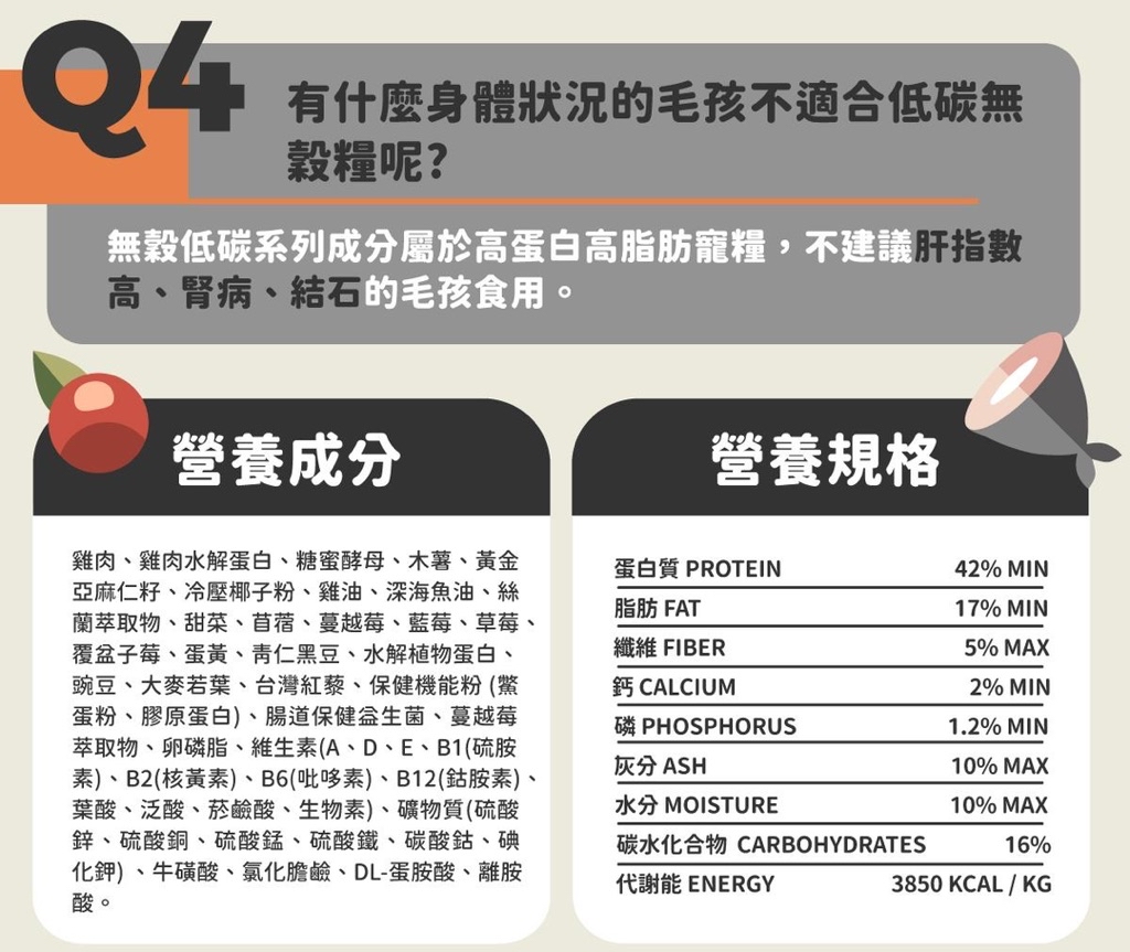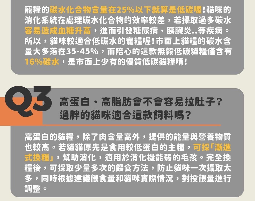 【泌尿道保健 & 爆毛配方】1.不含黃豆玉米小麥等高過敏源物質2.單一動物性源(雞肉)和易消化的碳水化合物3.高蛋白、高脂肪、低碳水化合物,確保體內能量平衡配方設計4.添加優質魚油提供omega-6脂肪酸和omega-3脂肪酸以及鱉蛋粉、膠原蛋白及卵磷脂,維持皮毛良好狀態5.添加優質莓果,含有蔓越莓萃取物及貓泌尿道保健等豐富營養素