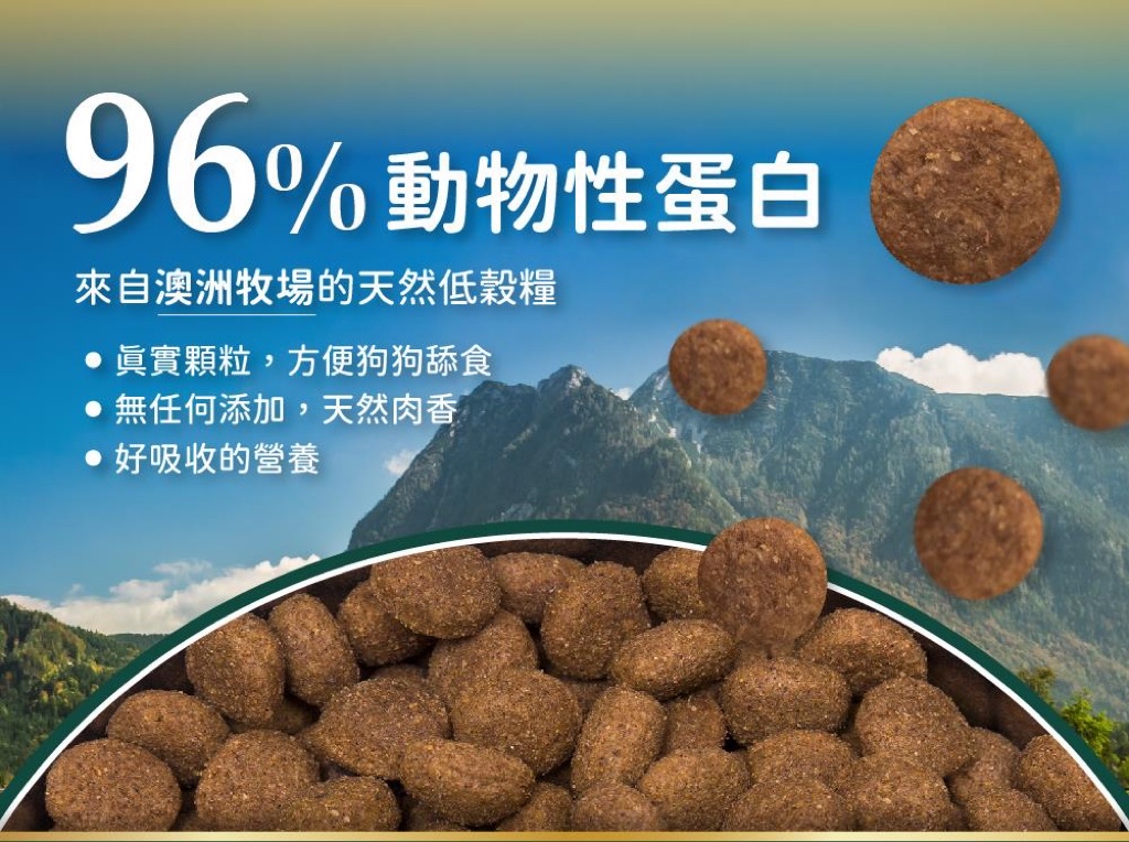 低穀全齡犬糧|真肉營養 × 穀物能量96% 動物性蛋白來源,滿足日常所需營養含穀能量配方,維持腸胃與活力平衡10+ 蔬果與超級食物,天然抗氧防護無人工防腐劑・色素・香料,安心無負擔雞肉腸胃保健:燕麥+木薯,溫和好吸收幫助免疫健康:蜂王乳+綠茶,自然防護力牛肉肌肉發展:高品質牛肉蛋白,支持強健體態滋補強身:多種莓果+維生素礦物質,維持活力與抗氧防護